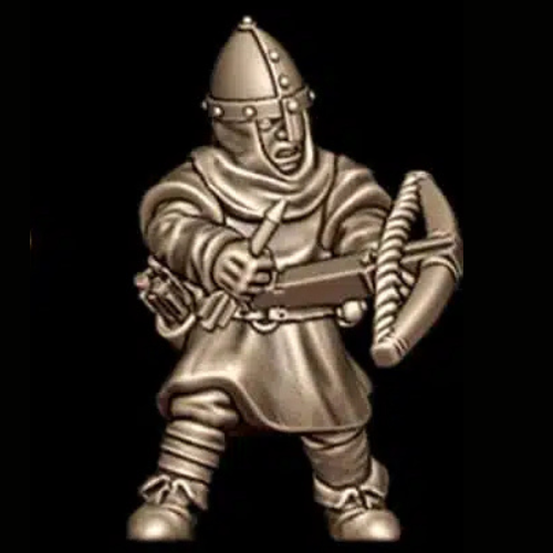 These Norman crossbow warrior miniatures represent infantry armed with early crossbows, providing deadly fire support on the battlefield.